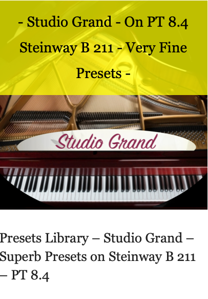 Many fine presets over 4 Categories with a unique sound on the Steinway B Studio Grand